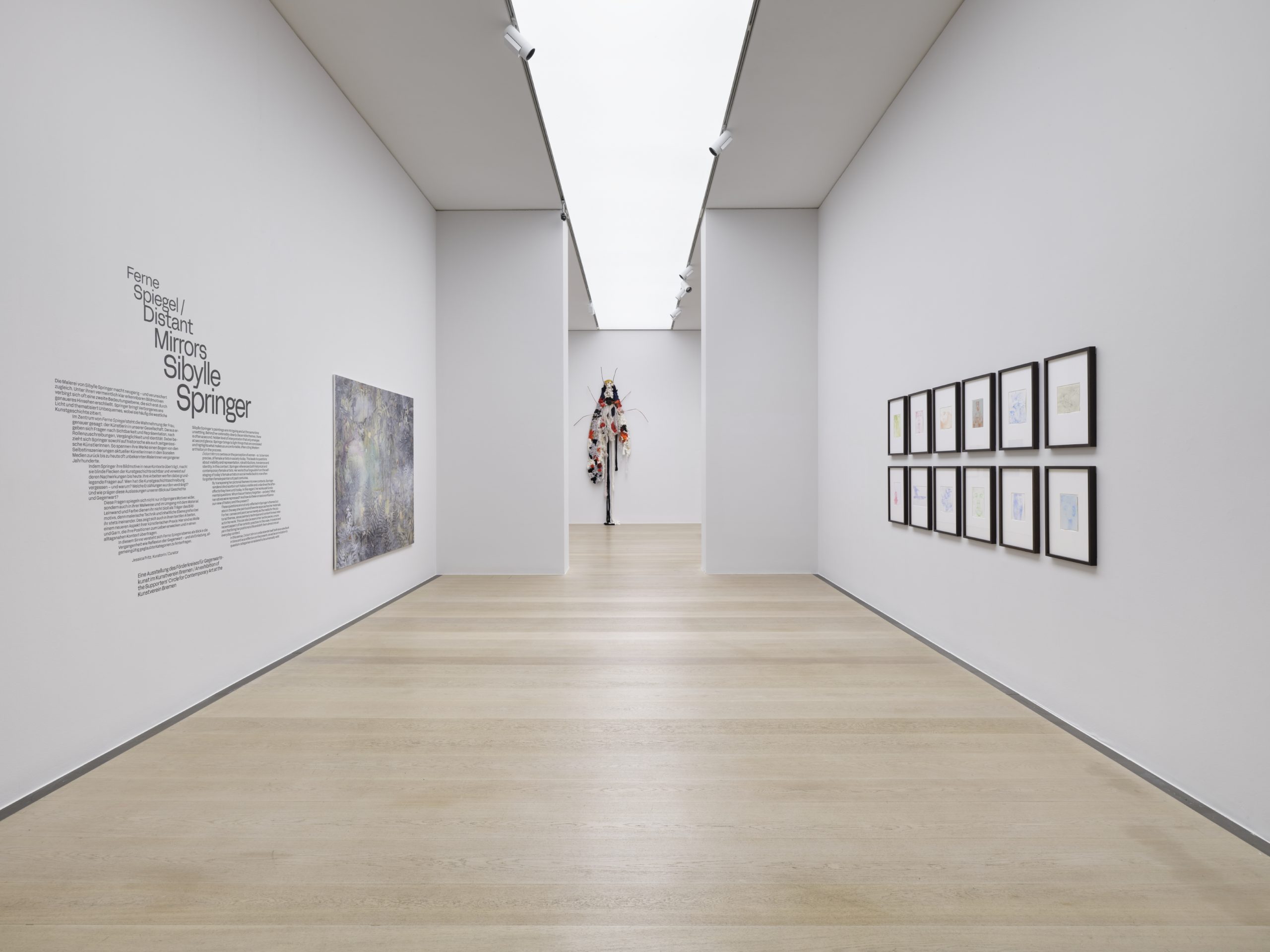 Indem Springer ihre Bildmotive in neue Kontexte überträgt, macht sie blinde Flecken der Kunstgeschichte sichtbar und verweist auf deren Nachwirkungen bis heute. Ihre Arbeiten werfen dabei grundlegende Fragen auf: Wen hat die Kunstgeschichtsschreibung vergessen – und warum? Welche Erzählungen wurden verdrängt? Und wie prägen diese Auslassungen unseren Blick auf Geschichte und Gegenwart? In diesem Sinne versteht sich Ferne Spiegel ebenso als Blick in die Vergangenheit wie Reflexion der Gegenwart – und als Einladung, allgemeingültig geglaubte Kategorien zu hinterfragen.