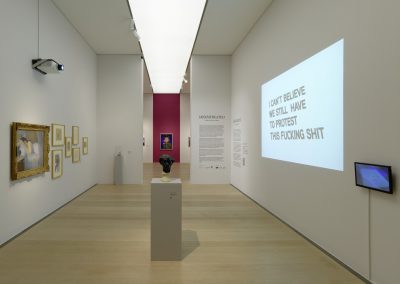 In Mis(s)treated. Mehr als Deine Muse! beschäftigten wir uns im kuratorischen Team erstmals mit der Repräsentanz von weiblichen Positionen in der Kunsthalle Bremen. Dabei lenkten wir den Blick auf feministische Perspektiven, die in der Dauerausstellung wenig vorkommen. So zeigten wir zum ersten Mal auch Werke aus der Sammlung, die bisher selten oder noch nie zu sehen waren. Ergänzt wurden diese durch Leihgaben zeitgenössischer Künstlerinnen, wodurch Leerstellen und bislang fehlende Perspektiven zumindest teilweise gefüllt werden.